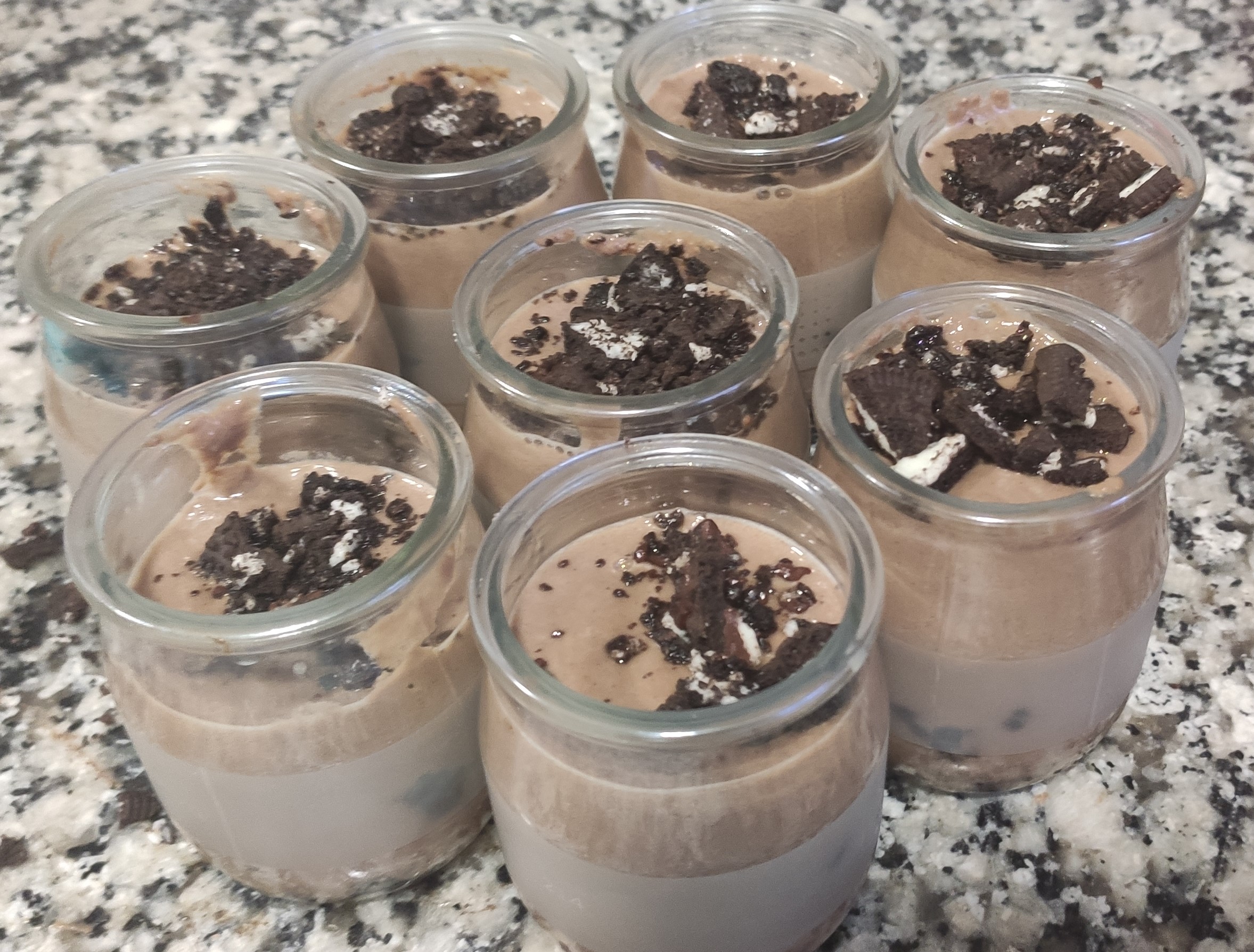 Aquests que ens queda molta xocolata de les nostres mones, que millor per fer unes natilles de xocolata, jo i he afegit galetes oreo.